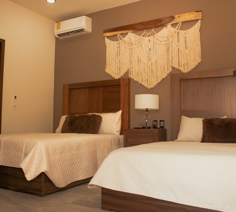 Disfruta de la mayor comodidad en estas amplias y acogedoras recamaras inspiradas en las mas hermosas playas, escapa de la ciudad, sin salir de la ciudad